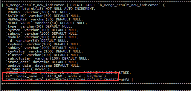 复制create index idx_hmrni on h_merge_result_new_indicator(keyName,module,BATCH_NO);1.创建后,再次查看执行计划依然无效: