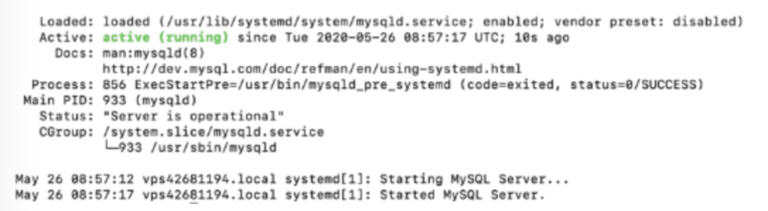 复制sudo systemctl status mysqld1.类似于以下的输出应该告诉你 MySQL 配置的状态。