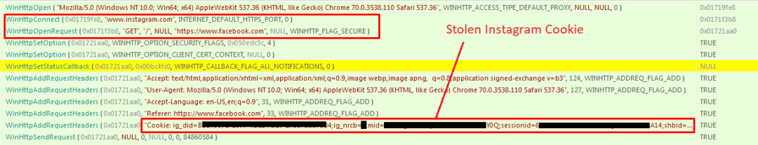 恶意软件执行功能,从IE中窃取Facebook cookies (Zscaler)