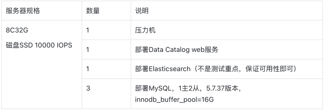 在字节内部 JanusGraph 主要用作 Data Catalog 服务的存储层,关于 MySQL 作为存储的性能测试并没有在 JanusGraph 层面进行,而是模拟 Data Catalog 服务的业务使用场景和数据,使用业务接口进行测试,主要会关注接口的响应时间。