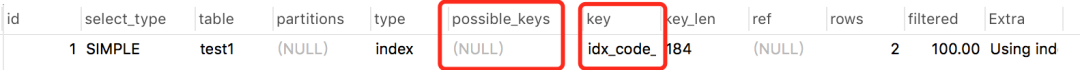 可能会出现possible_keys列为NULL,但是key不为NULL的情况。