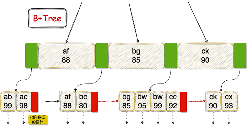 现在我给 username 和 age 字段建立联合索引,那么 B+Tree 在排序的时候,会首先按照 username 排序,当 username 相同的时候,再按照 age 进行排序。画出来的 B+Tree 如下图: