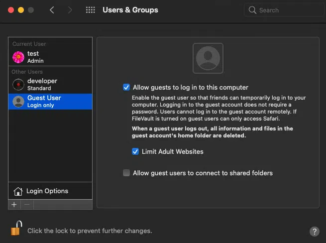 该设备可供多人使用。如果许多人都可以访问存储敏感信息的系统,您需要保护它免受未经授权的访问和内部威胁。实现此目的的一种方法是创建具有所需访问级别的不同用户帐户。例如,您可以允许用户读取数据并查看系统设置,但只允许系统管理员更改数据和设置。组织拥有该设备。当组织为员工提供工作计算机时,它可能会限制用户访问设备设置的权限并使用组策略控制此类设备。云服务器提供商macOS 允许管理员通过创建具有访问限制的用户帐户来执行此操作。该设备有多种使用场景。用户可以使用同一台计算机执行多种任务:编写代码、创建内容、观看电影等。为每项任务创建单独的用户帐户可以帮助根据特定的使用场景自定义设备和应用程序设置。多种类型的用户帐户意味着开发人员必须测试其应用程序如何与所有帐户配合使用。QA 团队应验证具有不同访问权限的应用程序的安装、执行和卸载。