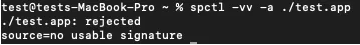 图 19. 检查未公证应用程序的开发者 ID 和公证