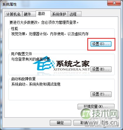 2、在打开的盘D盘窗口中,点击“高级”选项中性能下的站群服务器移动用“设置”按钮;