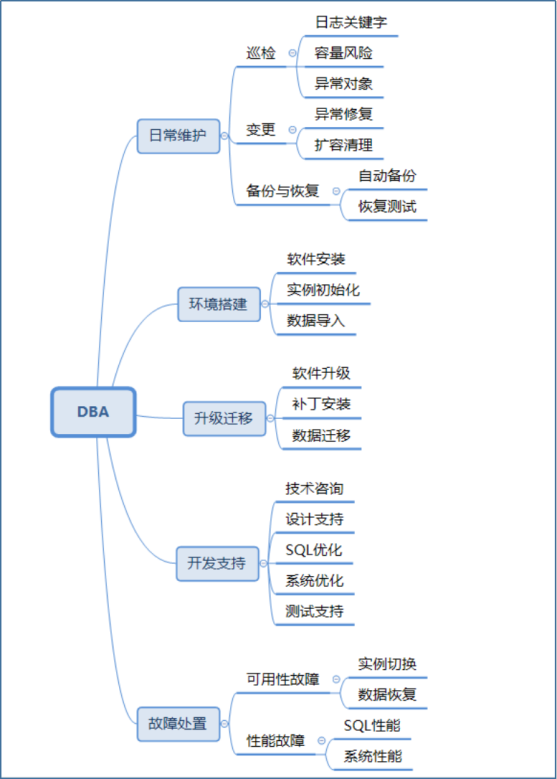 前面说了日常运维、环境搭建、升级迁移、支持开发四个方面的工作,如果这四个方面做好了,数据库的故障自然会少。但不是说故障处置的工作不重要,相比其他方面的技术问题,这里我们更想说的是的DBA在故障处置中行动标准。DBA参与故障处置,无论是不是数据库的问题,首先应该让自己进入战时状态,一切行动听指挥,严格执行指令,主动报告发现;牢记降低业务影响是故障处置第一目标,快速响应,沟通表达清晰简洁,当断则断。