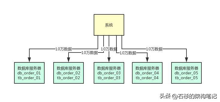 你可以根据比如订单id来hash后按5取模,比如每天订单表新增50万数据,此时其中10万条数据会落入db_order_01库的tb_order_01表,另外10万条数据会落入db_order_02库的tb_order_02表,以此类推。