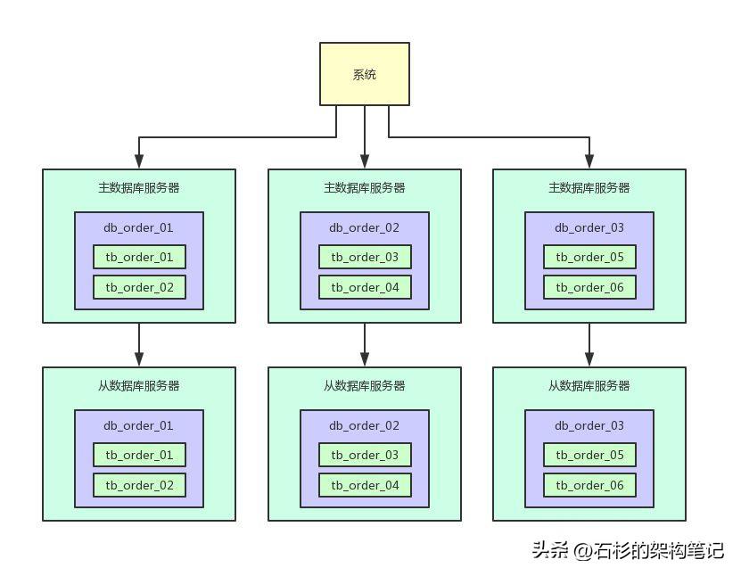 然后多台数据库的拆分方式,可以保证每台数据库服务器承载一部分的读写请求,降低每台服务器的负载。