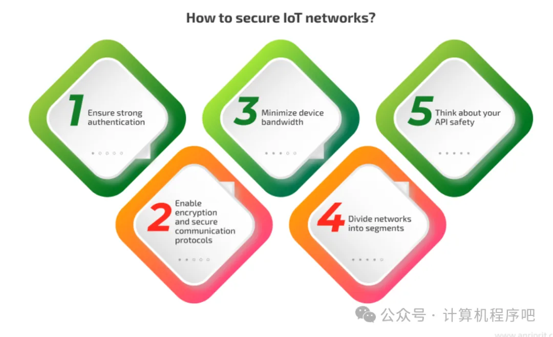 物联网上有多种安全实践,主要用于保护物联网免受漏洞攻击。下面提到了一些十大物联网安全实践: