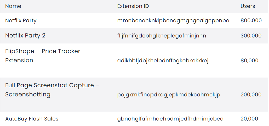 McAfee分析发现了5个用户量比较大的扩展恶意Chrome浏览器扩展,影响超过140万用户,影响分别是恶意:
