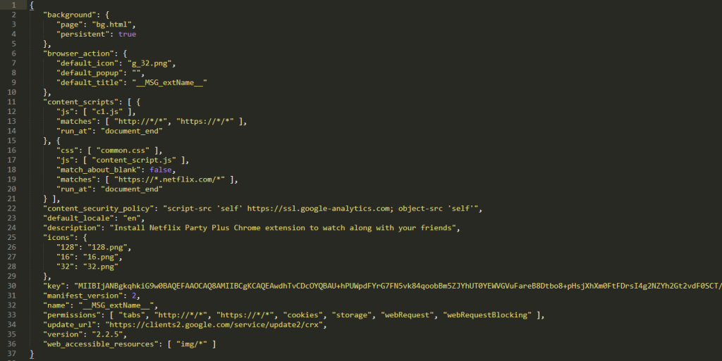 本文对恶意Chrome扩展‘mmnbenehknklpbendgmgngeaignppnbe’进行分析,因为这些扩展的扩展行为是类似的。