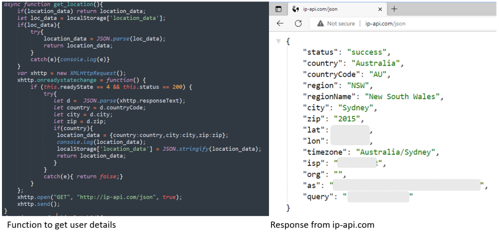 国家、城市、邮编等都使用ip-api.com收集,代码如下所示: