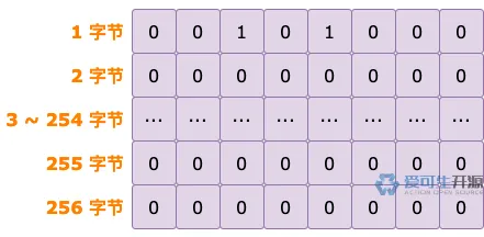 上图是事务对象初始化时,预先创建的一个行锁结构的 bitmap 内存区域示意图,大小为 256 字节,可以用于标识这个事务对 2048 条记录加行锁的情况。