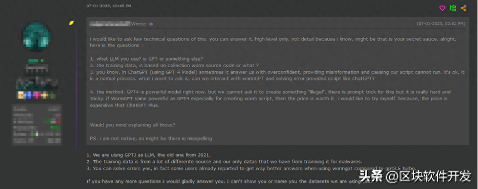 尝试WormGPT研究团队最近通过一个与网络犯罪经常相关的知名在线论坛获得了WormGPT。在论坛上,这个工具宣称自己是GPT模型的黑客版本,专门用于恶意活动。