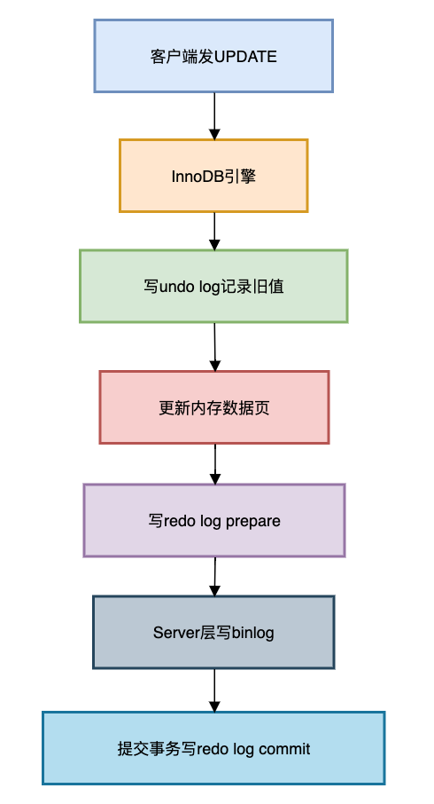 复制# 1. 解析binlog找到删除位置 mysqlbinlog --start-positinotallow=763 --stop-positinotallow=941 binlog.000001 > recovery.sql # 2. 提取回滚SQL grep -i DELETE FROM users recovery.sql # 3. 生成反向补偿语句 sed s/DELETE FROM/INSERT INTO/g recovery.sql > rollback.sql # 4. 执行恢复 mysql -u root -p < rollback.sql1.2.3.4.5.6.7.8.9.10.11.更新语句执行流程: