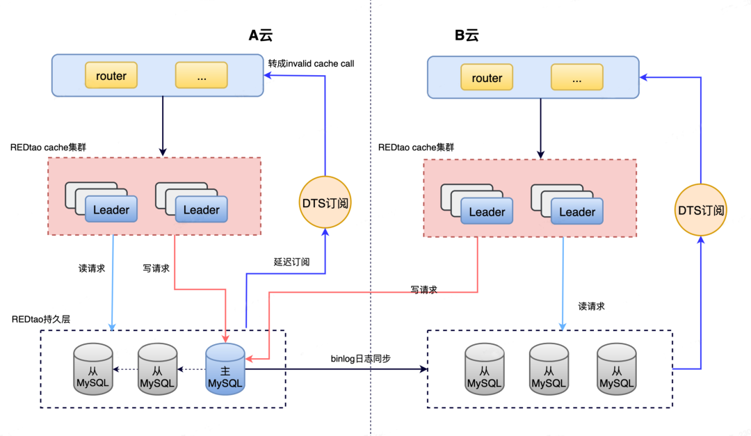 因此,REDtao 的跨云多活架构是我们结合自身场景下的设计,它在不改动现有 MySQL 功能的前提下实现了跨云多活功能: