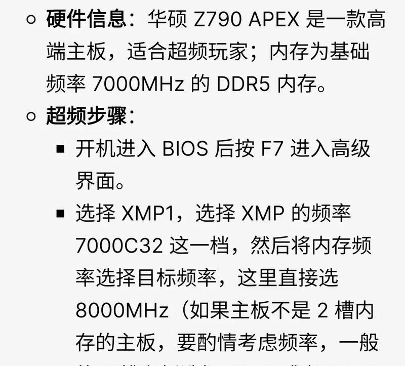 内存超频虽然可以提升电脑性能,但也存在一定的风险。在进行内存超频设置时,需要注意以下几点:1.确保电脑散热良好;2.谨慎调整内存超频参数;3.测试稳定性并做好相应的调整。