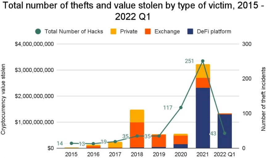 根据Chainalysis数据,黑客货币2022年第1季度,利用漏洞DeFi加密货币平台频繁成为黑客攻击的加密目标。2021年,黑客货币约有25%从DeFi平台窃取的利用漏洞加密货币之后返回给了受害者,而今年没有一起从DeFi窃取的加密资金返回的案例。