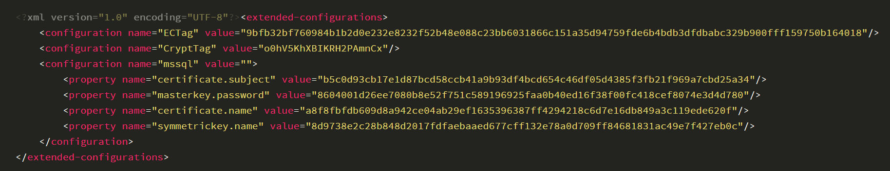 密钥固定保存在C:\Program Files\ManageEngine\ADManager Plus\conf\customer-config.xml,试环内容示例: