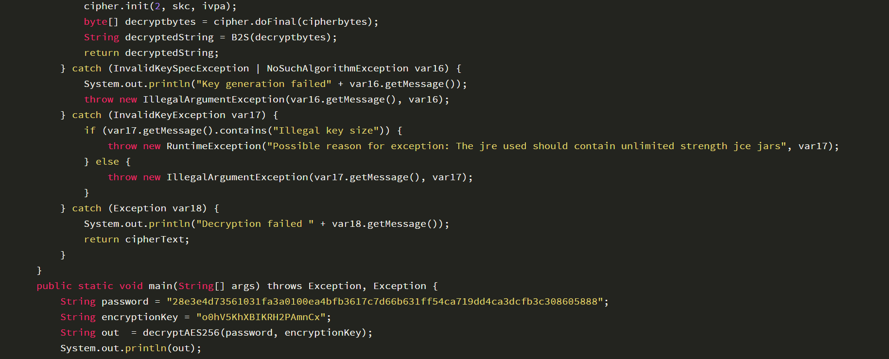根据以上得到的境搭建密文28e3e4d73561031fa3a0100ea4bfb3617c7d66b631ff54ca719dd4ca3dcfb3c308605888和密钥o0hV5KhXBIKRH2PAmnCx,编写解密程序,洞调代码如下: